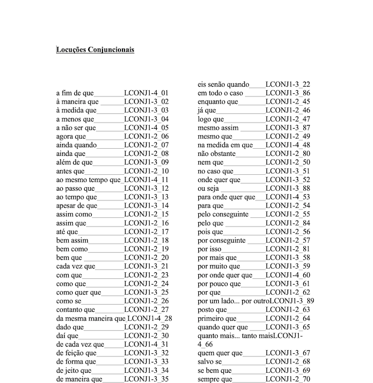 Some of the annotation of the Locutions conflicted with the tagging from the Neural Network, and figuring out how to correctly tag the Corpus was the challenge behind the Post-Processing. Some Locutions are based on Adverbs, some on Prepositions, some Verbal, there's a wide variety.