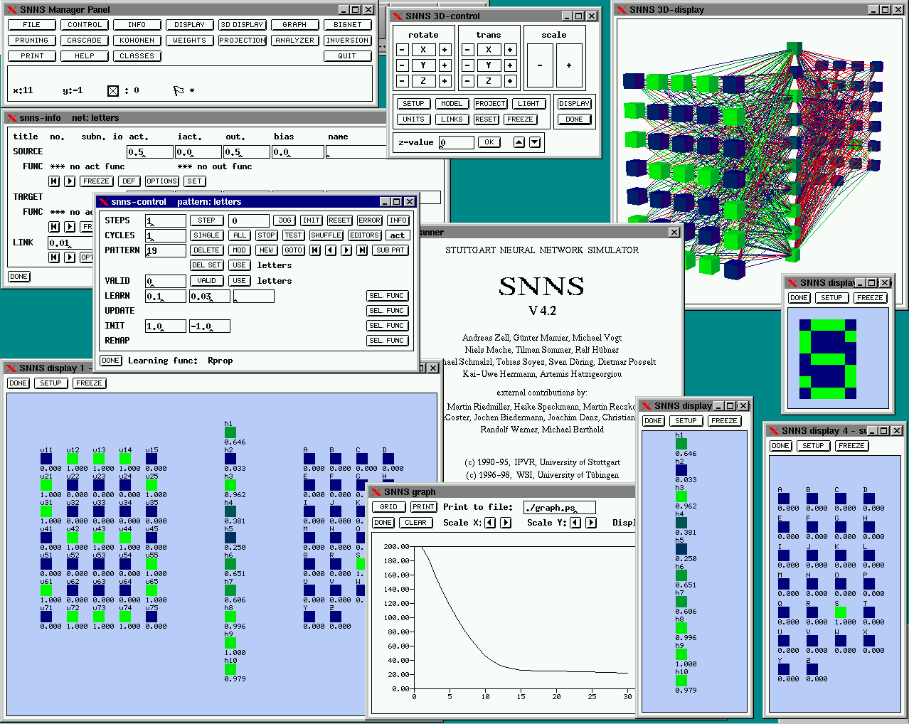 The software being used was the Stuttgart Neural Network Simulator, a package that included command line tools and a GUI interface native to X-Window. It featured a graphical interface and allowed the training to be monitored and graphed, which was a good support.